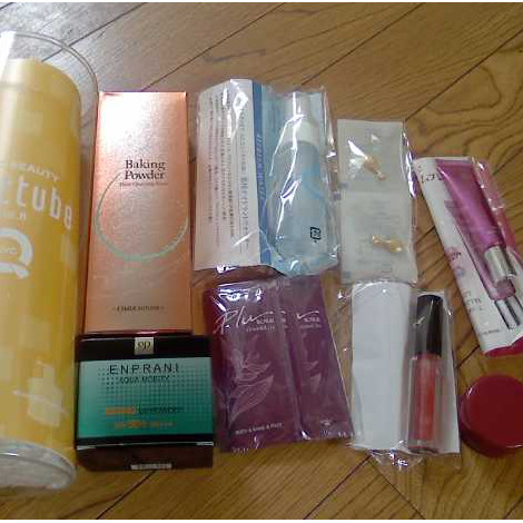 | FTCシャンプー&トリートメント、マッサージソルト、エレクトーレフェイストリートメント 、デルマQⅡMPGホワイトロースなど サンプルサイズばかりでしたが魅力的な商品がそろってましたのでとても満足でした。 | |