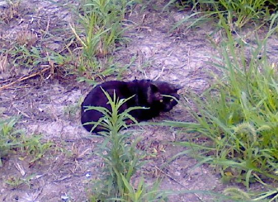 震災でさら地となっている空き地にいた黒ネコちゃん。