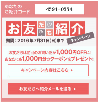 お友達紹介キャンペーン!紹介コードご利用ください